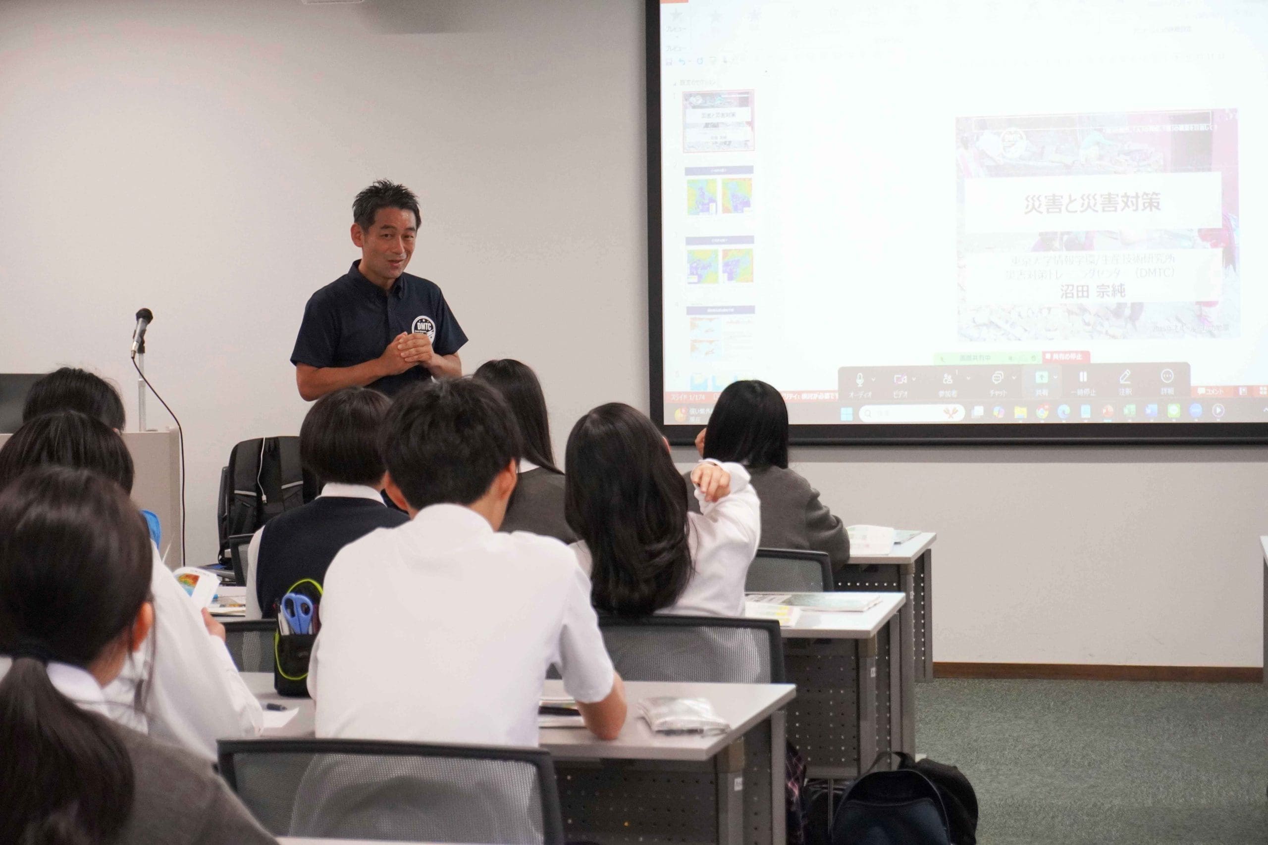 - 実施日:2025年6月4日(水) - 実施校名:大阪府立大東市立南郷中学校 - 講師名:沼田 宗純 准教授 - 参加者・参加人数:中学3年生 20名 - 講義は、まず大東市についての概要を確認したのち、一般的なお話、ハザードとは何か、および災害対応とは何かなどが説明されました。中学範囲で学習するような地震のしくみから、自治体の実対応といった、他では学べないことまで、様々なことを学習しました。 - 講義中、生徒さんたちは熱心にメモを取りながら耳を傾け、授業内容に加え、先生が防災に関心をもったきっかけについてなど、意欲的な質問が寄せられました。将来、防災の研究に携わりたい生徒の姿も見られ、関心の高さがうかがえました。
