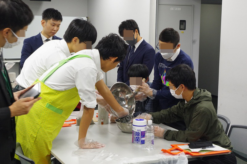 はじめに、コンクリートを構成する材料や製造工程等の講義があり、次にグループに分かれて実際にコンクリート・モルタル・セメントペーストを作製する演習が行われました。